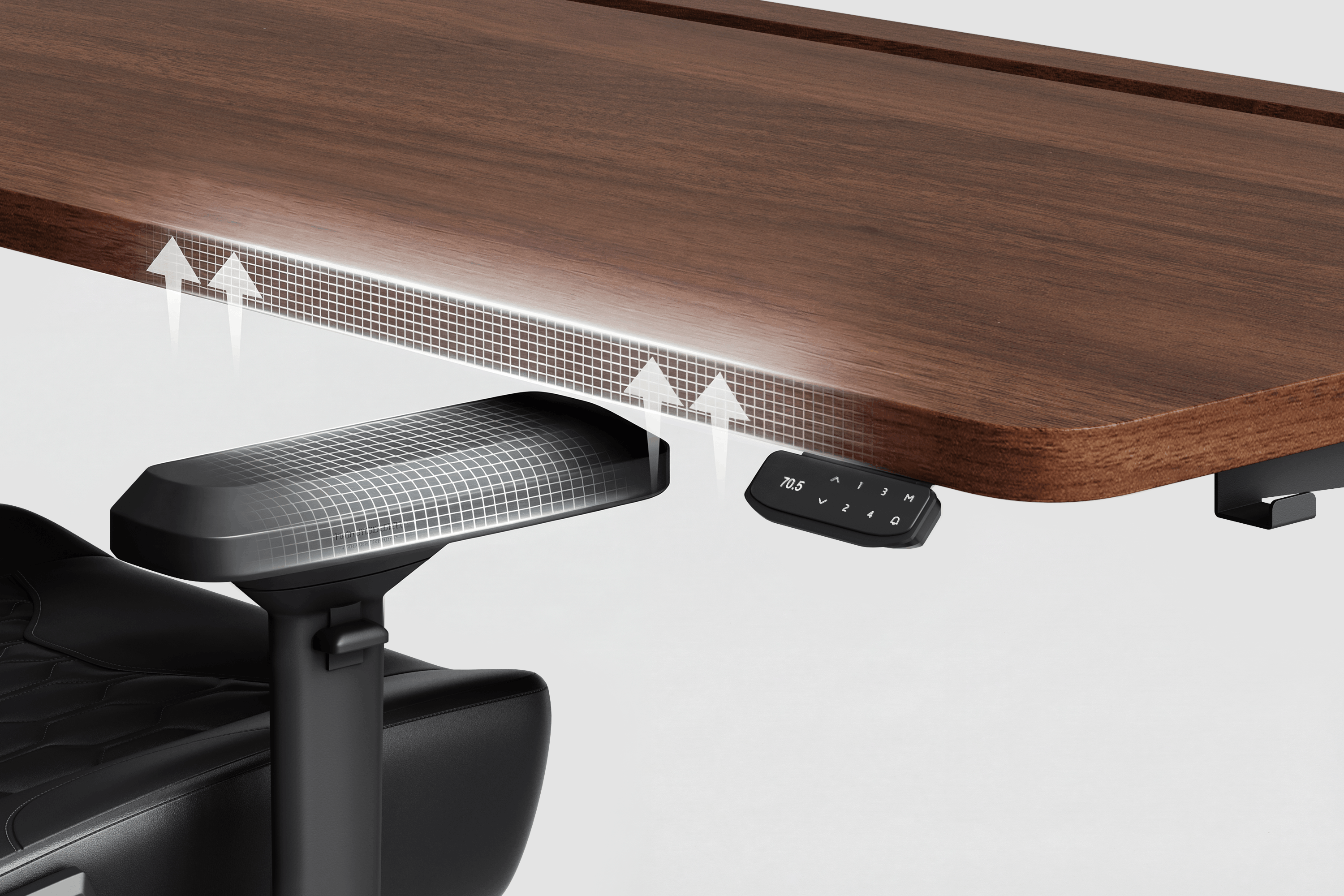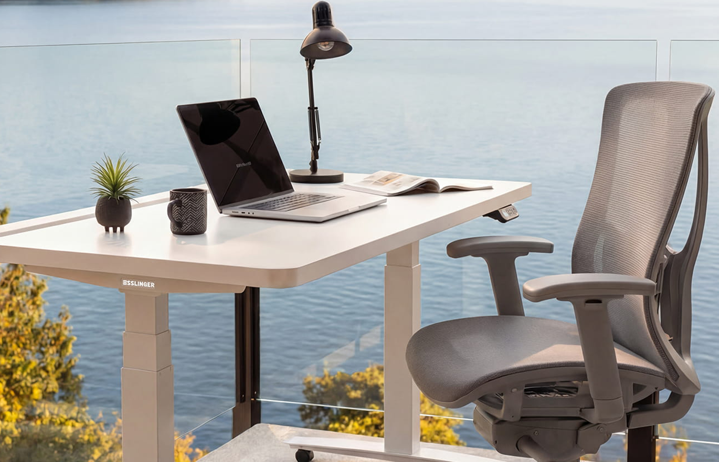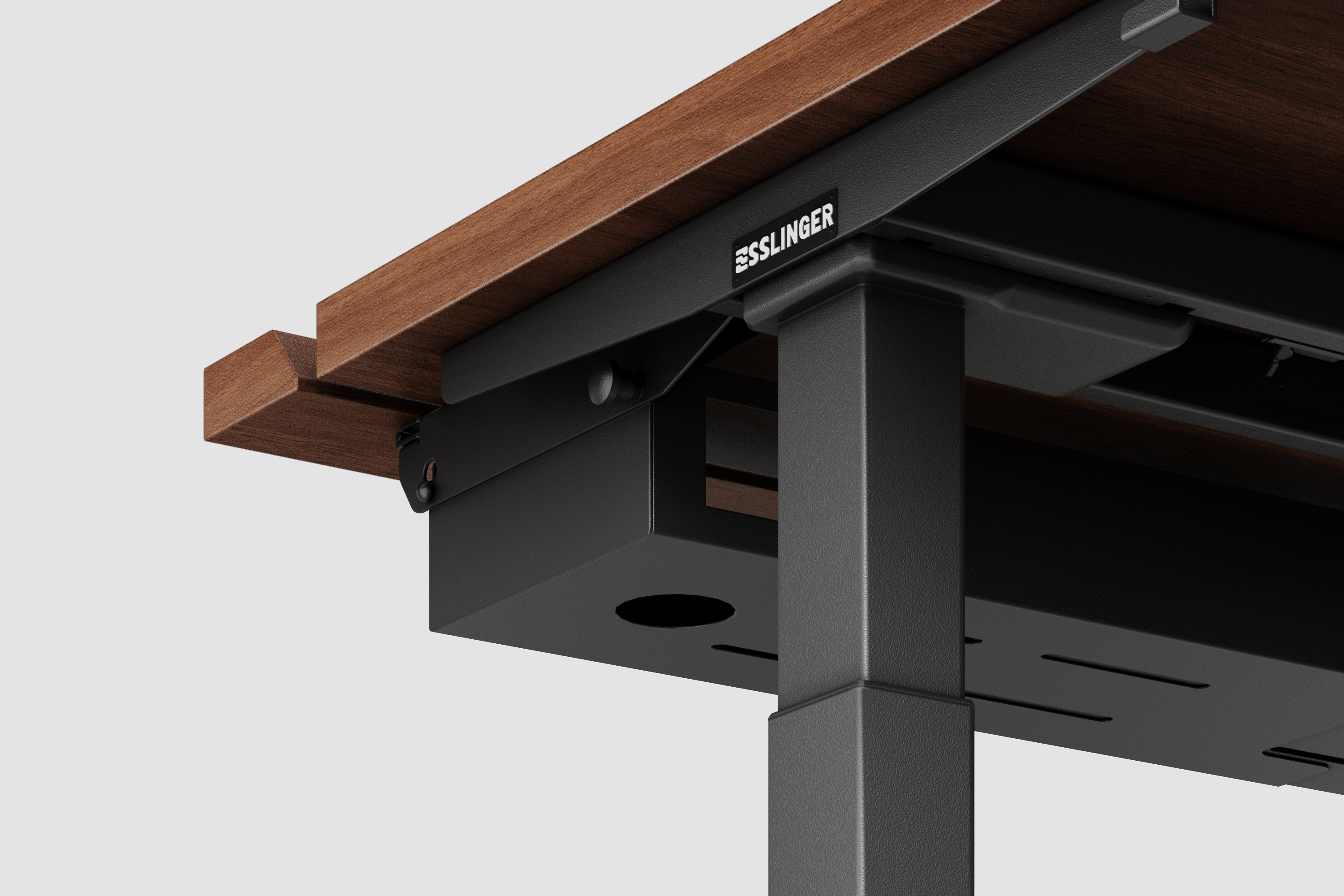 Aus diesem Anspruch heraus wurde Esslinger entwickelt. Und aus diesem Grund beginnen wir mit dem Herzstück des Arbeitsplatzes: dem höhenverstellbaren Schreibtisch.